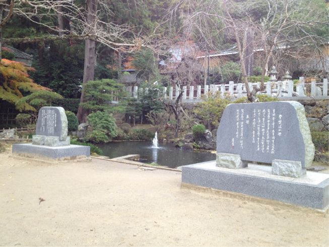 黒い石碑。なんて書いてあるか読めん。